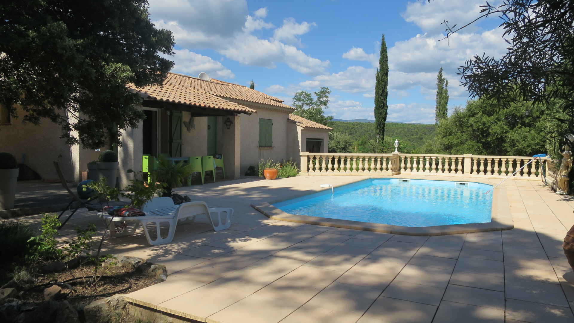 Villa tout confort pour 7 personnes, équipement très complet. Trois chambres et deux sanitaires. Parking dans la propriété. |